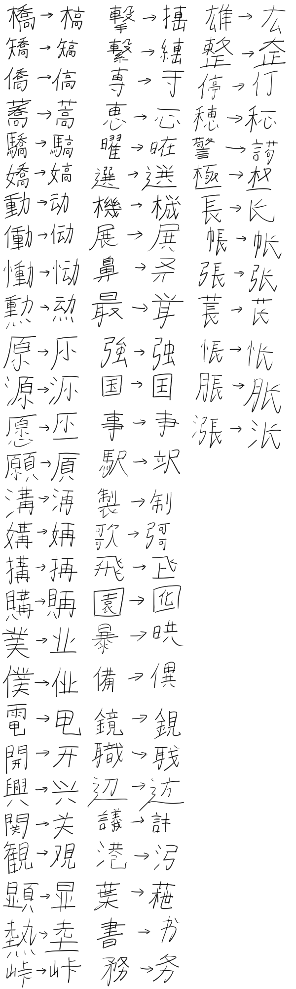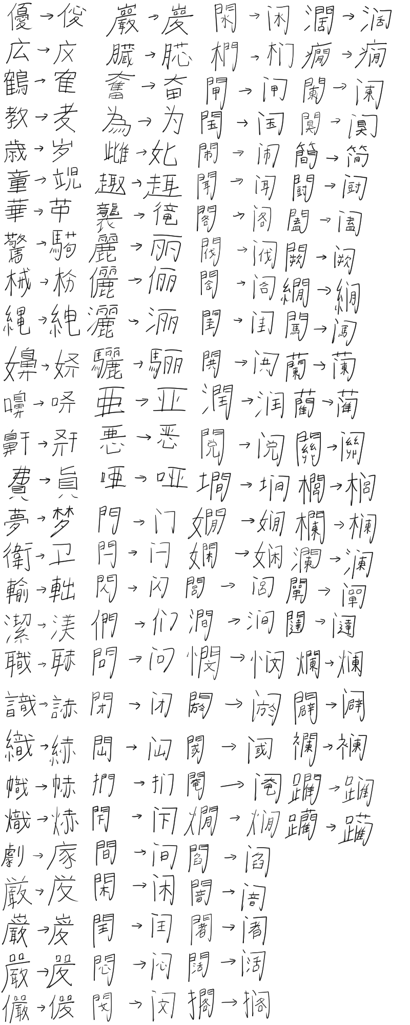 ryakuji common in Grennia, borrowing from Simplified Chinese, and aiming